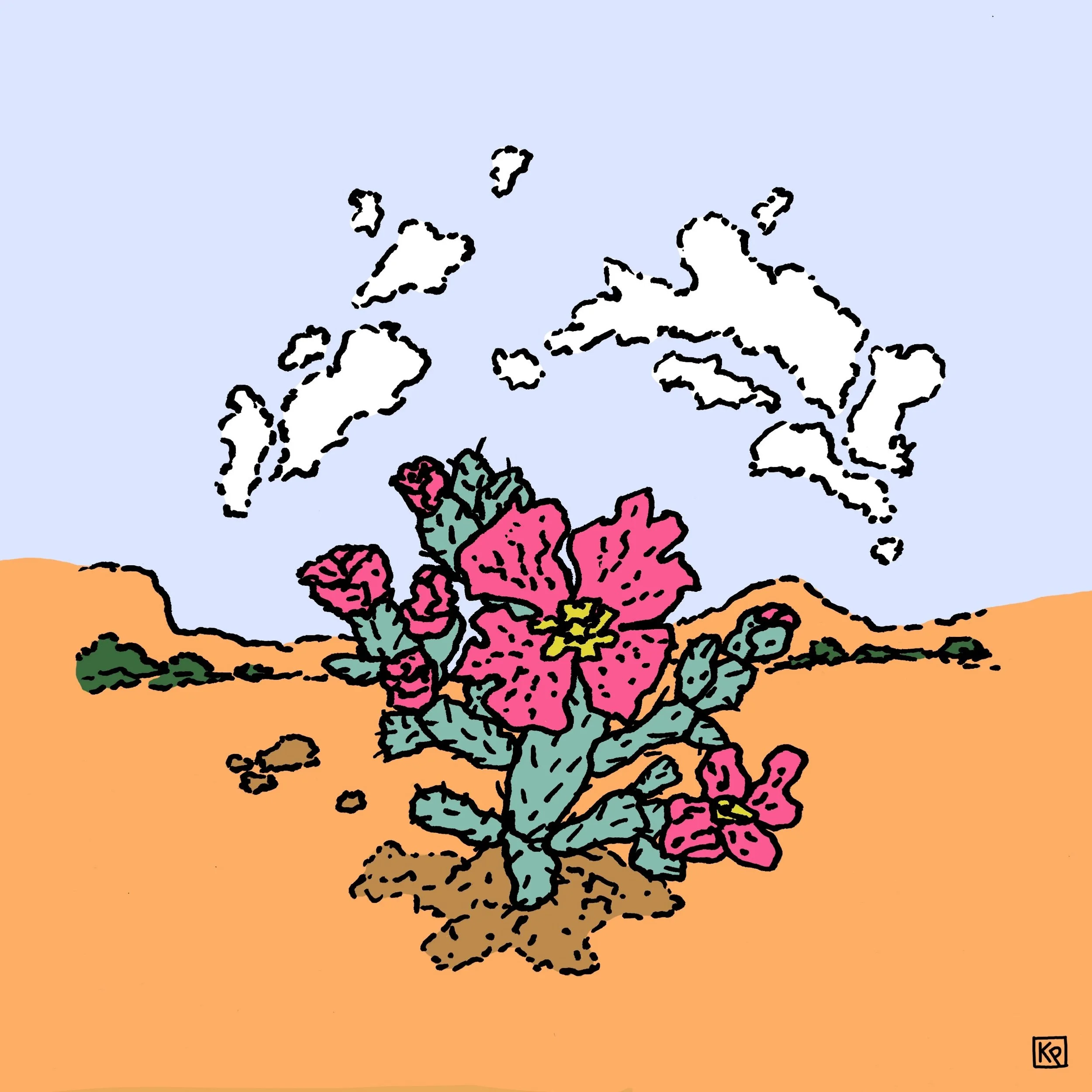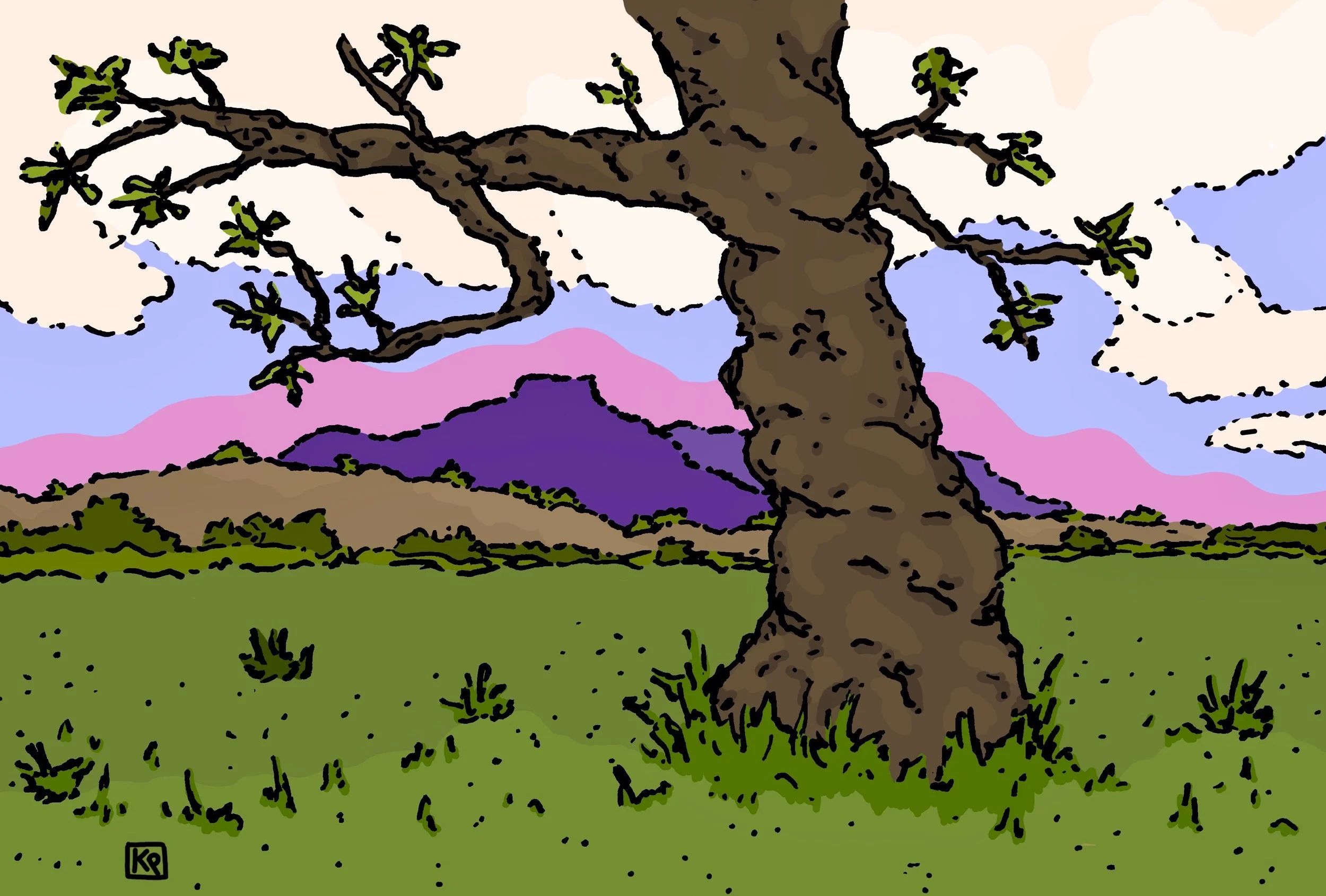 This body of work is inspired by Pluskota’s travels and daily life. She photographs beautiful landscapes and interesting compositions, later using them as a reference. These illustrations start off as marker drawings on paper and then color is added digitally.